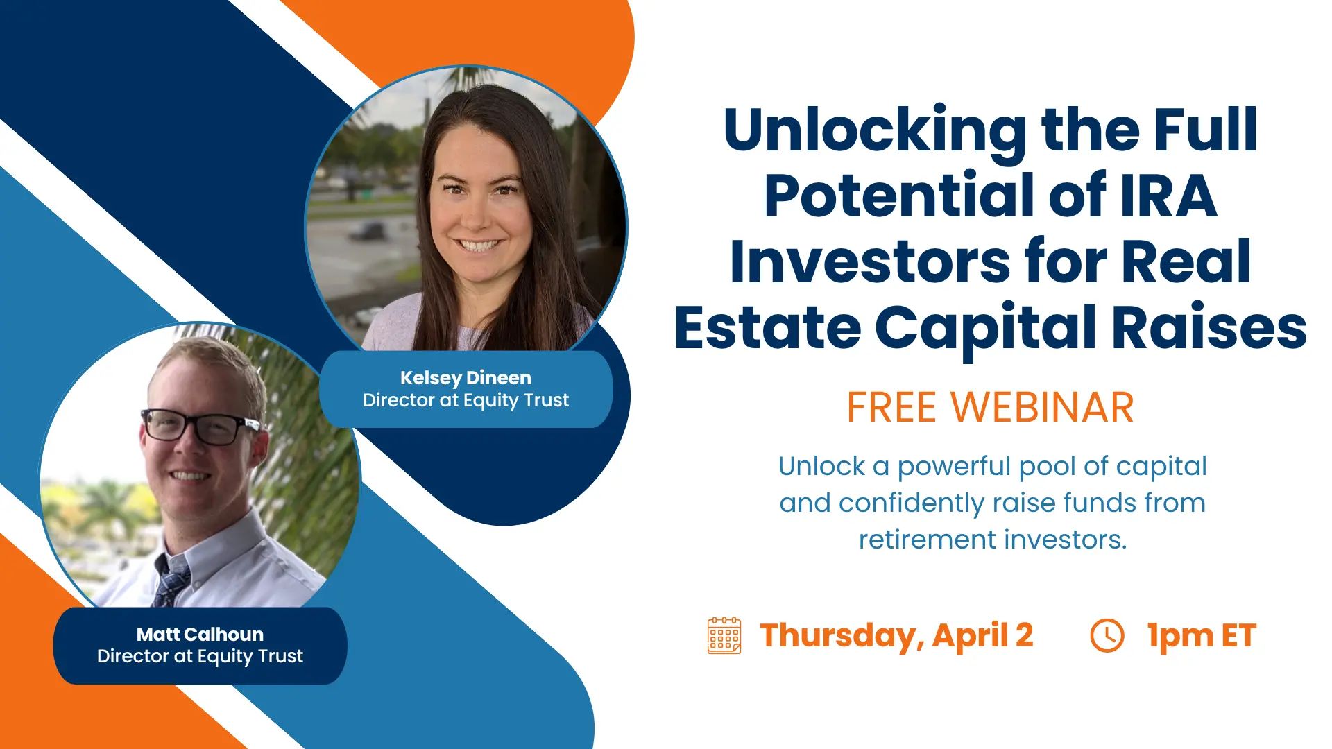 ๐ Join us and Equity Trust Directors Kelsey Dineen and Matt Calhoun on Thursday, April 2, at 1 PM ET for a free webinar on unlocking retirement accounts as a powerful source of deal capital.