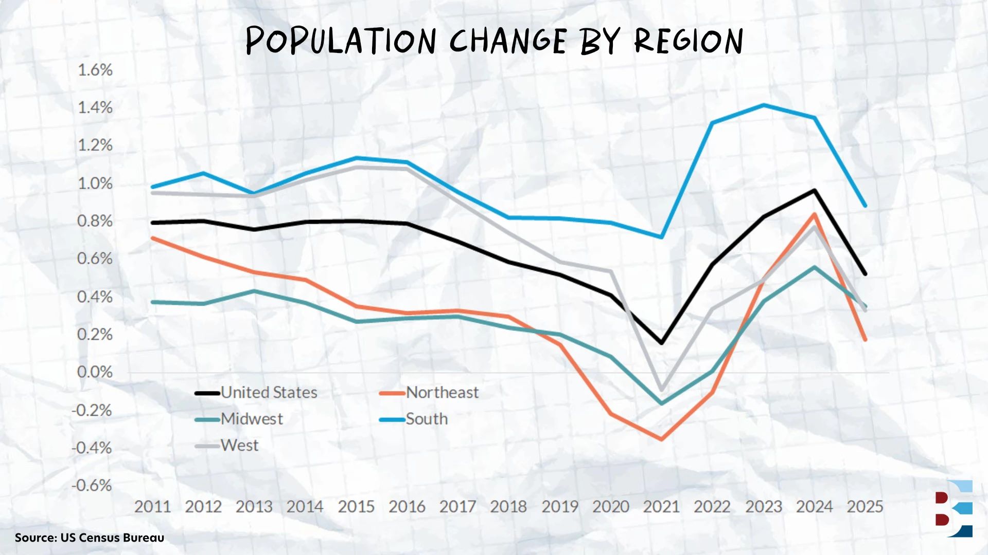 Net international migration fell to 1.3 million in 2025, according to RealPage, down from a peak of 2.7 million the year prior, pushing U.S. population growth to its slowest pace since 2021. The Census Bureau projects migration will fall further to 321,000 in 2026 โ potentially the lowest in more than 50 years.